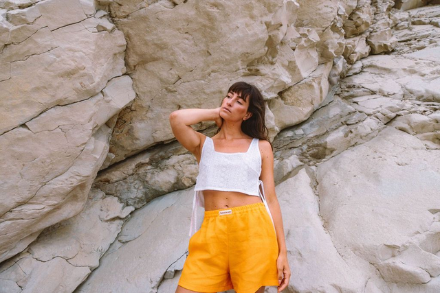 Shell est un crop top aux encolures devant et dos carrées, pensé pour être porté à la plage et aux beaux jours.